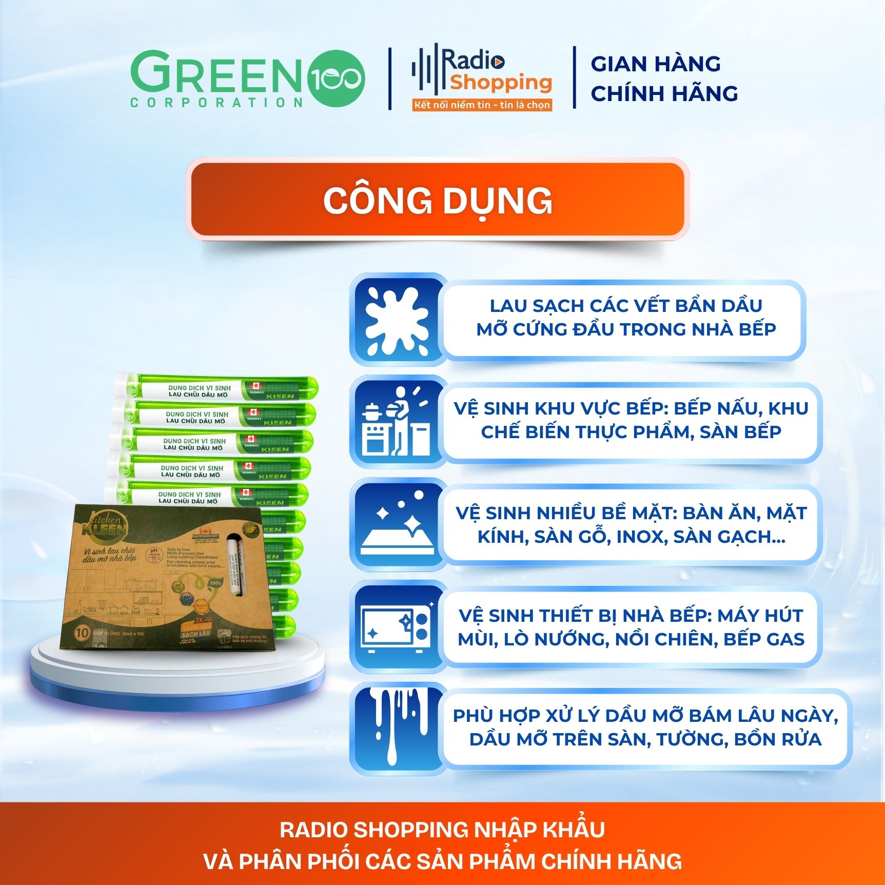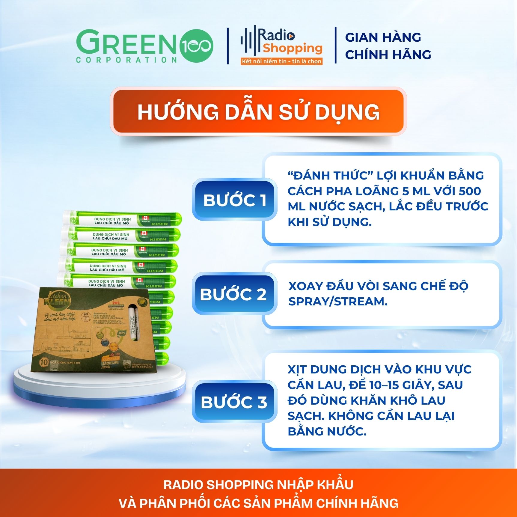Radioshopping chuyên cung cấp các sản phẩm làm sạch và khử mùi thân thiện với môi trường, được phát triển dựa trên công nghệ sinh học tiên tiến với lợi khuẩn tự nhiên thay thế cho các hóa chất tẩy rửa truyền thống. Radioshopping cam kết mang đến cho người tiêu dùng những sản phẩm an toàn, hiệu quả và góp phần giảm thiểu tác hại từ hóa chất cũng như rác thải nhựa, giúp bảo vệ sức khỏe gia đình và môi trường sống.