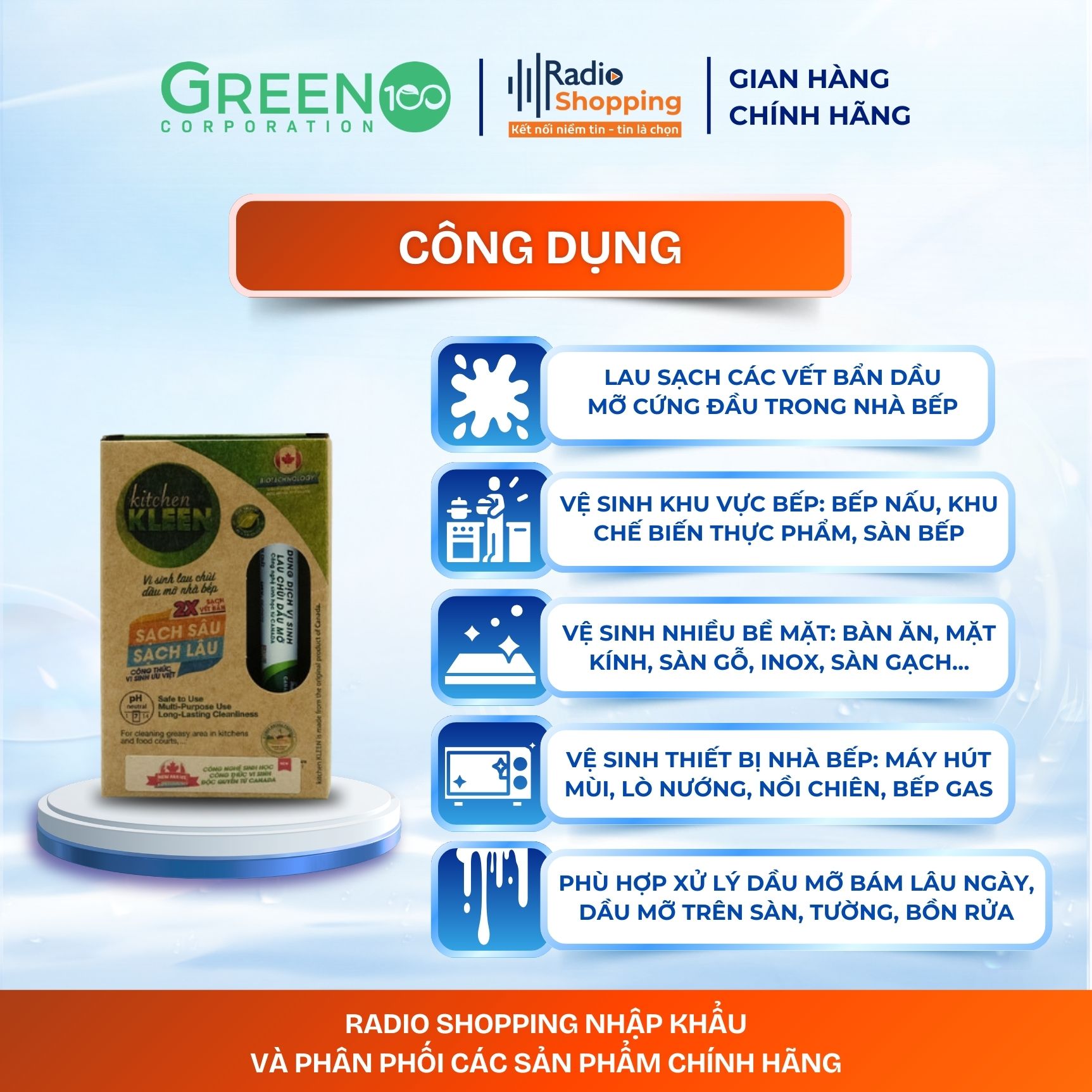 - Kitchen KLEEN ứng dụng công nghệ sinh học từ Canada