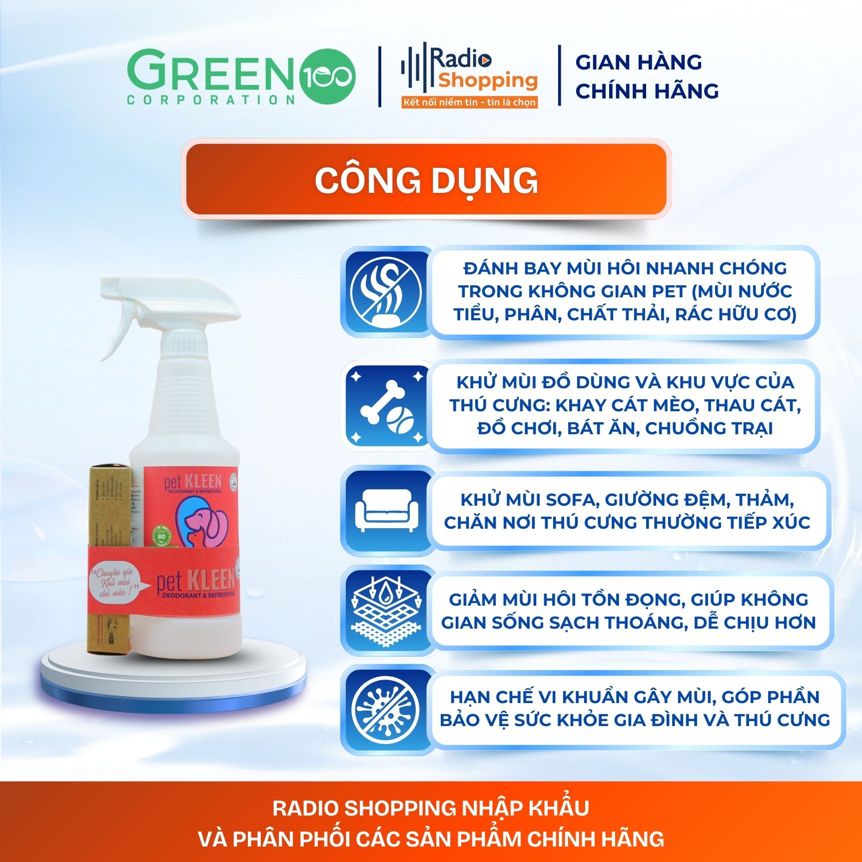 Radioshopping chuyên cung cấp các sản phẩm làm sạch và khử mùi thân thiện với môi trường, được phát triển dựa trên công nghệ sinh học tiên tiến với lợi khuẩn tự nhiên thay thế cho các hóa chất tẩy rửa truyền thống. Radioshopping cam kết mang đến cho người tiêu dùng những sản phẩm an toàn, hiệu quả và góp phần giảm thiểu tác hại từ hóa chất cũng như rác thải nhựa, giúp bảo vệ sức khỏe gia đình và môi trường sống.