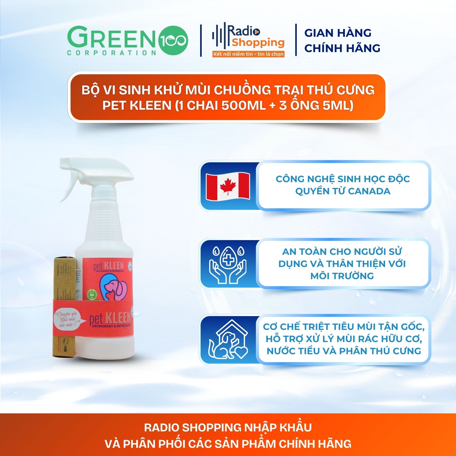 Pet KLEEN là dung dịch khử mùi thú cưng ứng dụng công nghệ sinh học từ Canada,