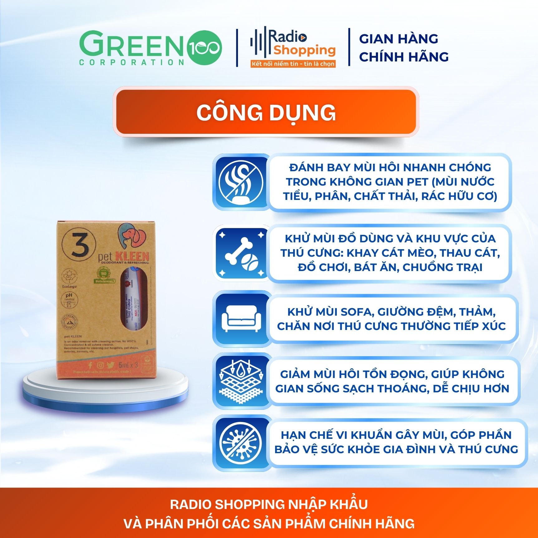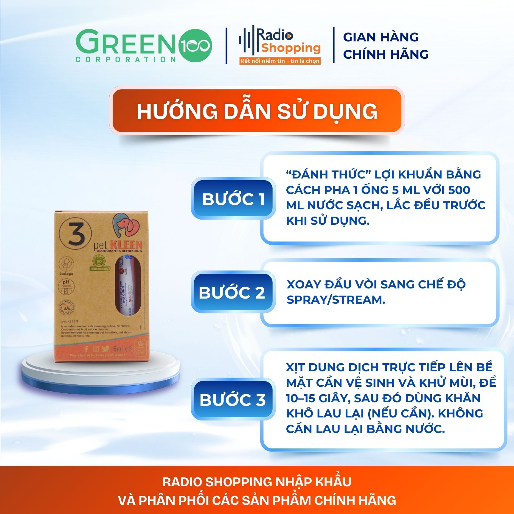 Radioshopping chuyên cung cấp các sản phẩm làm sạch và khử mùi thân thiện với môi trường, được phát triển dựa trên công nghệ sinh học tiên tiến với lợi khuẩn tự nhiên thay thế cho các hóa chất tẩy rửa truyền thống. Radioshopping cam kết mang đến cho người tiêu dùng những sản phẩm an toàn, hiệu quả và góp phần giảm thiểu tác hại từ hóa chất cũng như rác thải nhựa, giúp bảo vệ sức khỏe gia đình và môi trường sống.