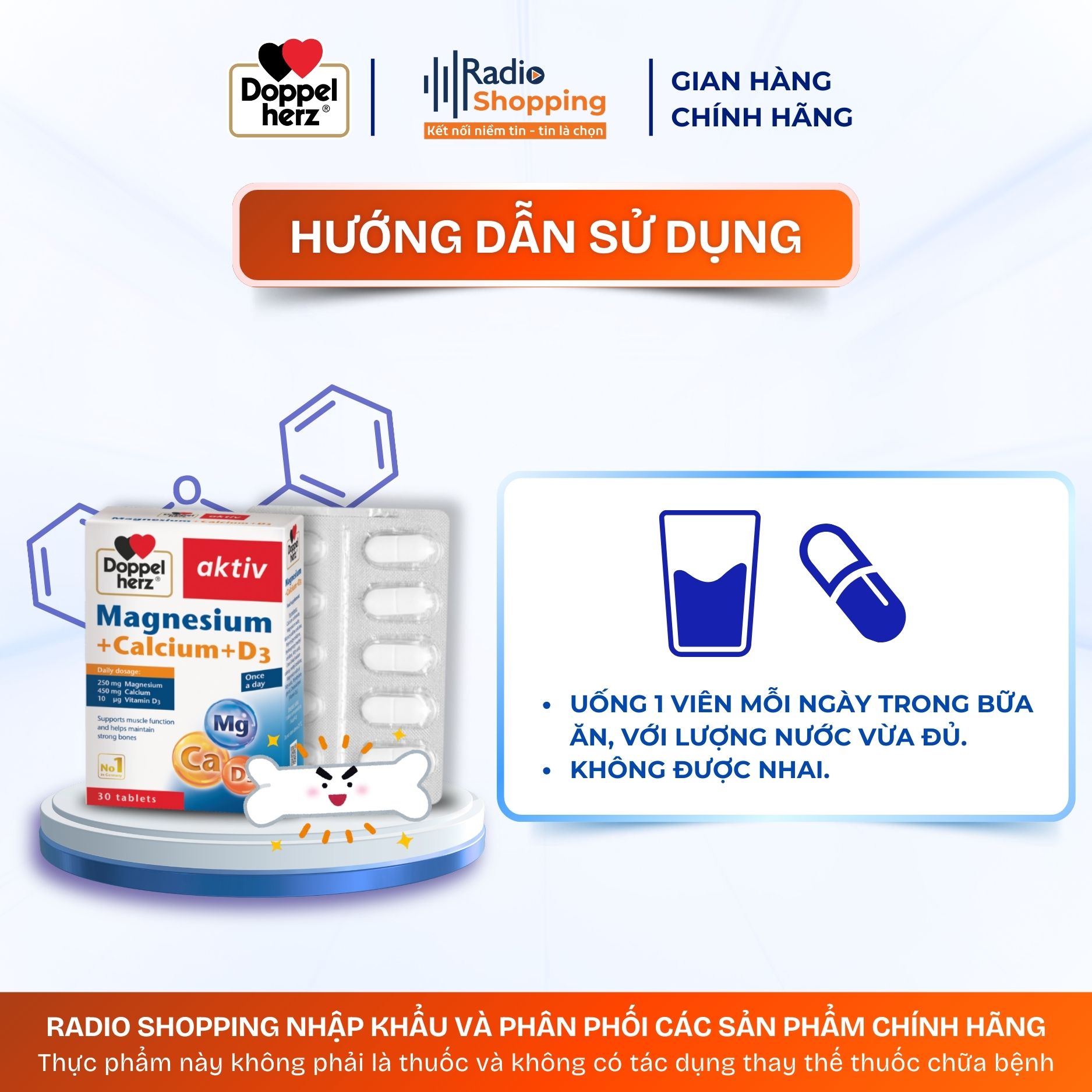 Uống 1 viên/ngày, trong bữa ăn với lượng nước vừa đủ;