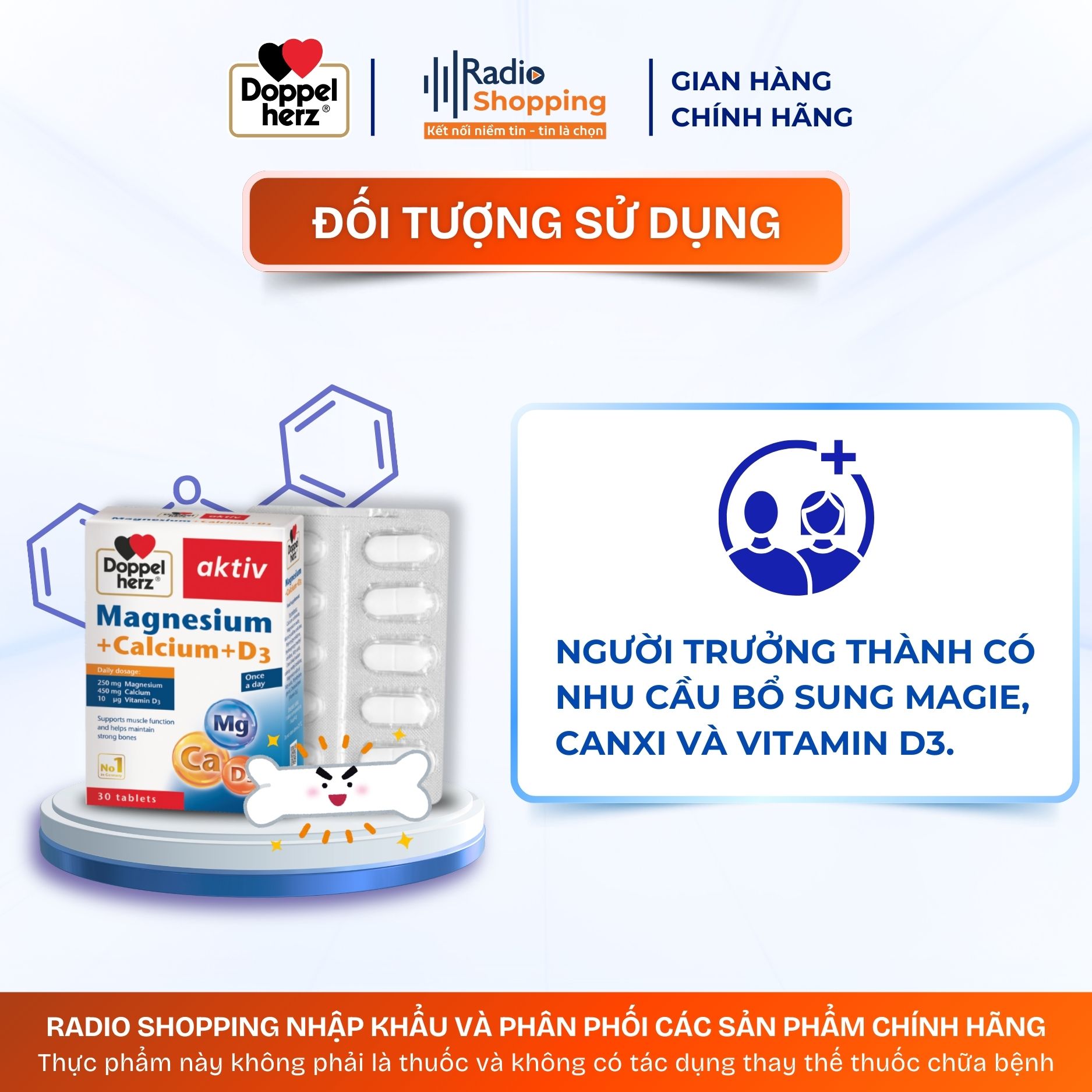 Người trưởng thành có nhu cầu bổ sung Magie, Canxi, Vitamin D3.